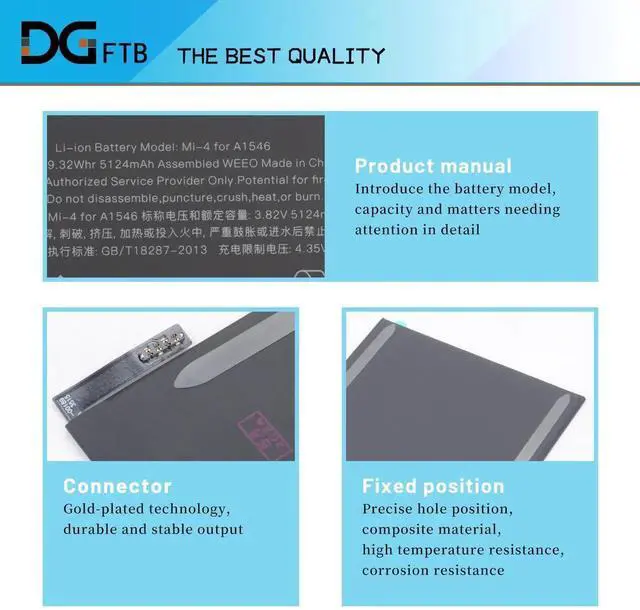 A1546 Tablet Battery Replacement Compatible for Apple iPad 5.2, for iPad Mini 4 (4th Gen) 7.9" A1538 A1546 A1550 Series MK6K2LL/A MK872LL/A PN 020-00297 3.82V 19.48W h/5100mAh with Installation Tools