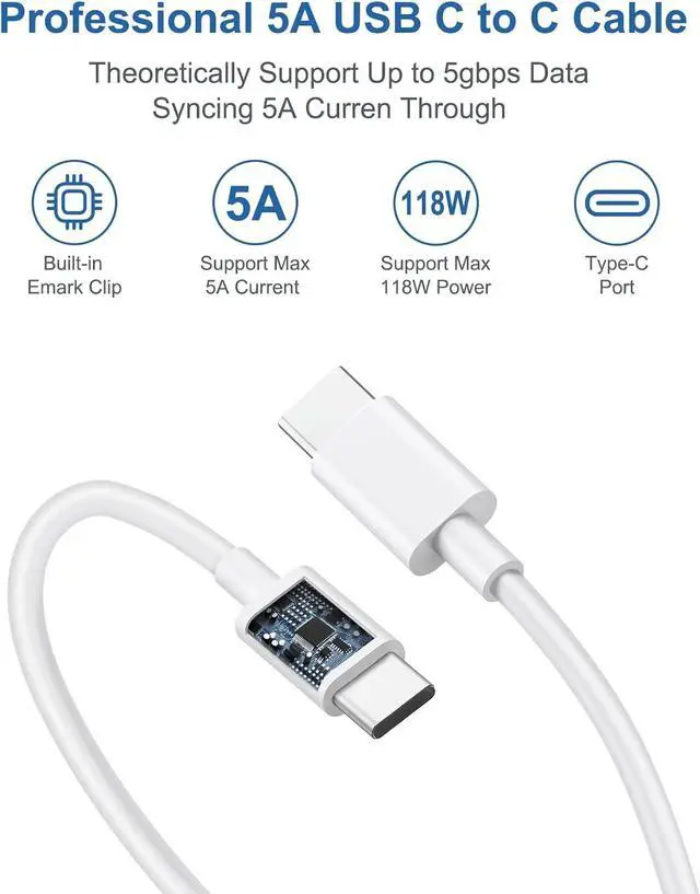 Output: 20.5V / 4.7A 15V/3A 12V/3A 9V/3A 5.2V /3A. PD 3.0 fast charger compatible with macbook pro/air galaxy and all usb c devices. [Multiple Security Protection] Made of high-quality materials for long service life. Use the MFi chip against over-current over-voltage overload temperature short-circuit and auto recovery. [What You Get ]1x 10FT Long Fast charging Cable and 1x 118W Power Charger. Tangle-free 10Feet length and foldable plug protect screen from scratches make it more portable for travel. If you have any questions please feel free to contact us.