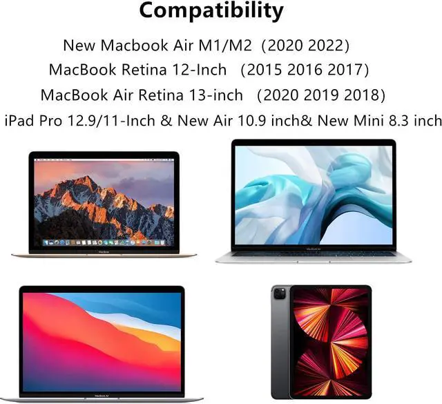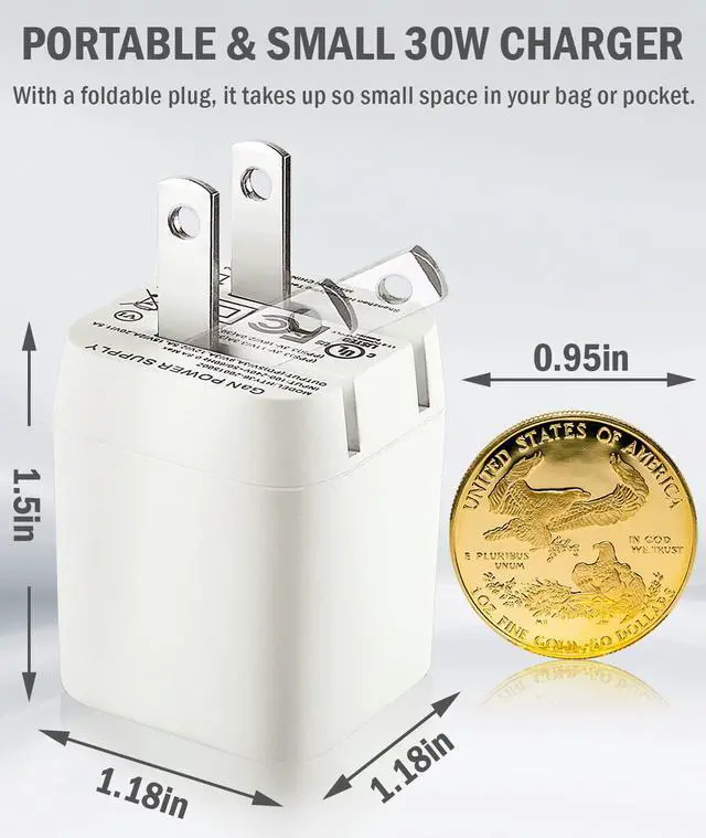 Wide Compatibility - Compatible with New MacBook Air M1/M2 Chip Retina 13-inch 2020 2019 2018 MacBook Retina 12-Inch 2015 2016 2017 and New iPad Pro 12.9 -Inch/ 11-Inch (2018 2020 2021) & New Air 10.9 inch(2022/2021) New Mini 8.3 inch iPhone 15 15Plus 15Pro 15Pro MaxFast Charging - 30W USB-C output provides fast charging for your devices supporting Type-C PD 5V/3A 9V/3A 12V/2A 15/2A 20V/ 1.5A specifications (compatible with 18W 20W 29W 30W). Small and Lightweight - At 60% smaller than an original 30W USB-C charger GaN technology not only reduces the size and weight of the charger but also generates less heat reduces power consumption effectively and improves charging efficiency greatly makes charging safer and more convenientSafety Assurance - UL certified compliant with electrical safety standards equipped with protection against short-circuit over-voltage over-current and internal overheating to ensure safer charging.