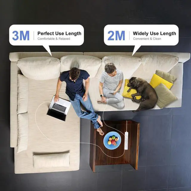 C Cord 10FT: Great flexibility for short-distance use such as at your desk the 10FT Macbook Pro Charger USB C cable can be used with the PD wall charger to charge your device without the hassle of a long cable. And for long-distance use such as when you're lying on the couch or in bed the 3M usb-c charger cable can charging for your Macbook Air2 IN 1 Super Fast Charging and