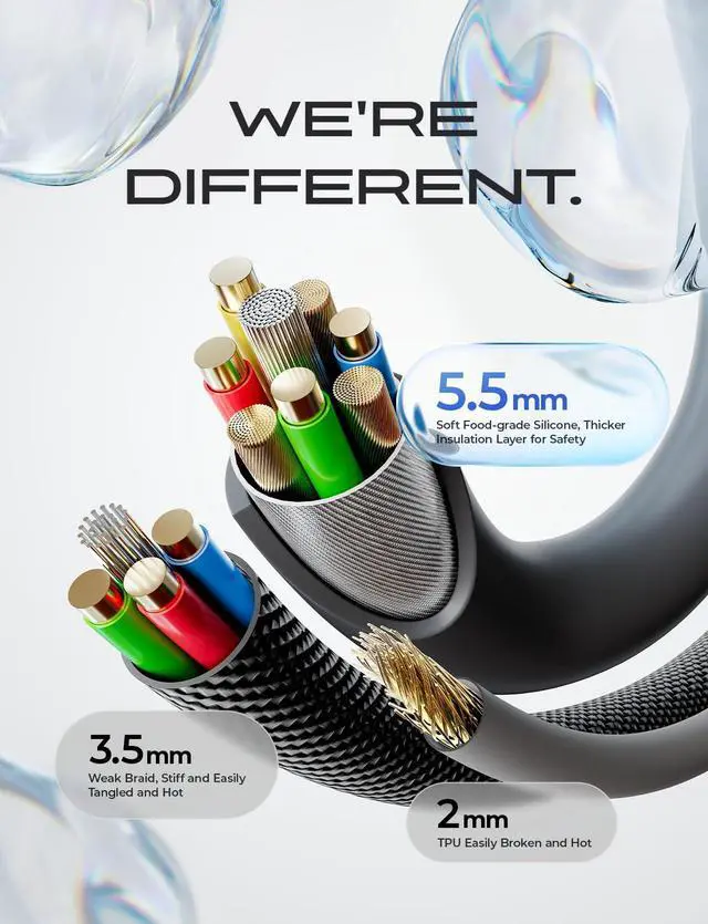 Thickened insulation layer: Makes charging safer without hot eliminating potential safety hazards.?