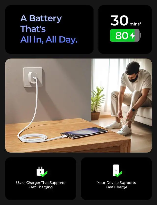 Which 2.2X faster than 3.1A version and charges USB C Phone from 0% to 80% within 35 minutes iPad Pro 64% within 35 minutes Macbook air 50% within 35 minutes and data transfer speeds up to 480Mbps (1200 songs synced per minute) compatible with Tablt iPad Air Mini Pro Macbook and More. Triple Protection USB C PortUSB to USB C Cable has electronic safety certifications that comply with appropriate standards it built-in laser welding technology which ensure the metal part won't break. The copper core part is reinforced with UV glue to prevent the solder joints from falling off.