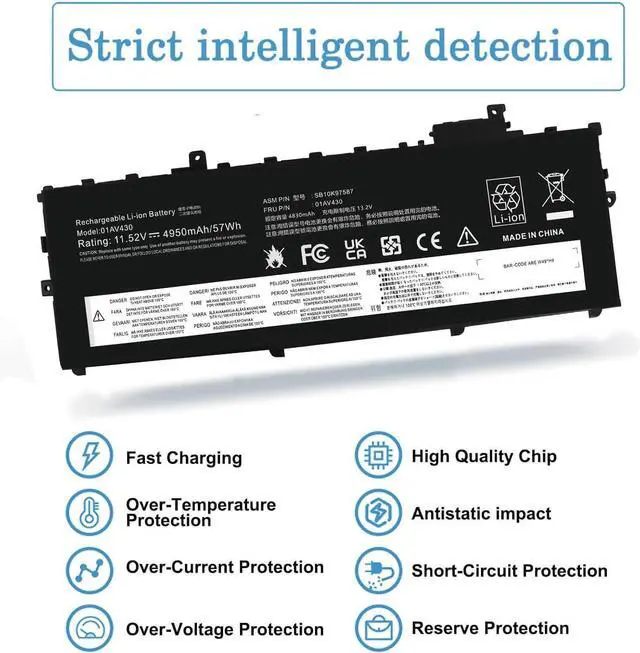 Compatible Part Number: 01AV430 Battery Compatible with Lenovo 01AV430, SB10K97587, 01AV431, SB10K97588, 01AV494, SB10K97586, 01AV429, SB10K97586 Rechargeable Li-ion battery;
