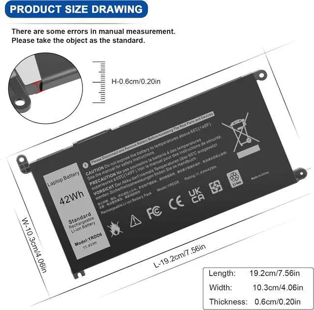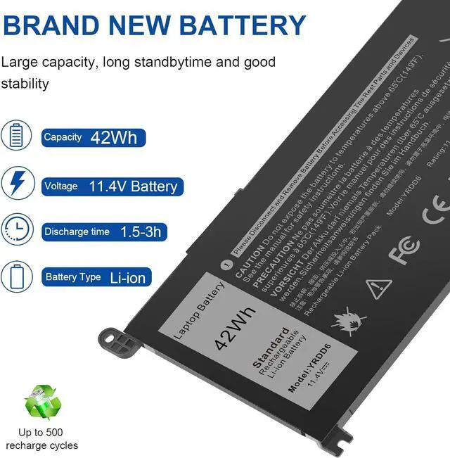 Compatible Battery type: for Dell 42Wh Battery YRDD6 0YRDD6 VM732 0VM732 1VX1H 01VX1H 1VX1H96 P93G 8JF5PW2 P93G001 P75F, inspiron 3583 battery