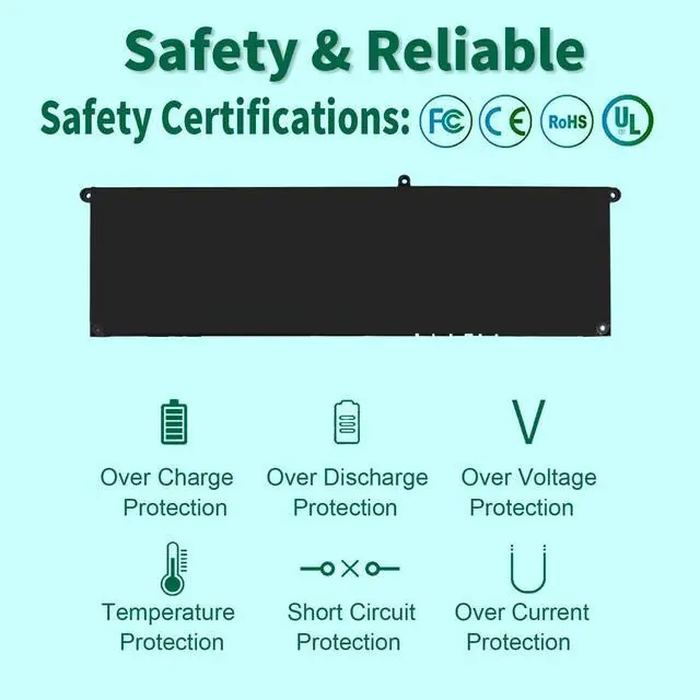 Our V6W33 Battery is highly compatible with the original V6W33 Dell Battery, Dell 54Wh Type V6W33 Battery and meets CE/FCC/ROHS/UL certified standards. It is a brand-new product from the manufacturer and supports up to 1000 recharge cycles.
