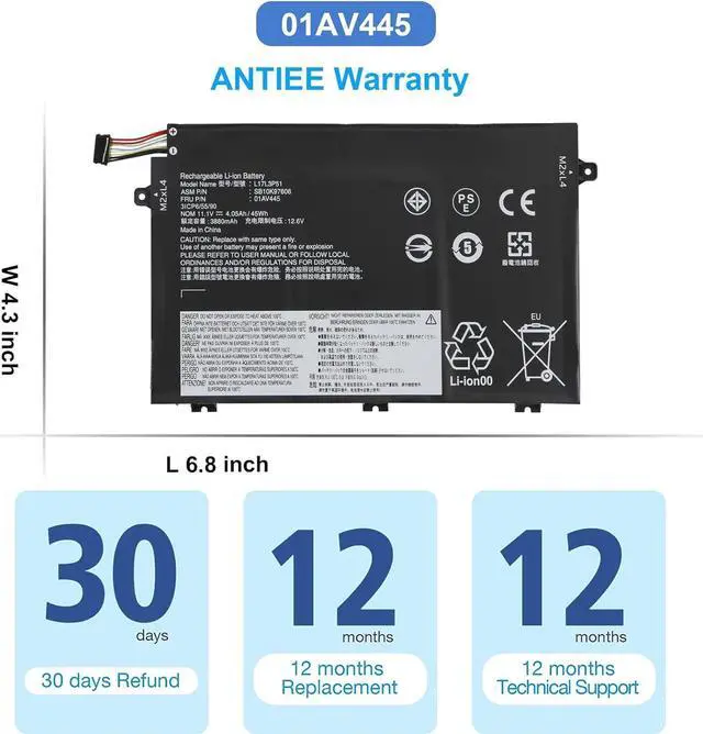 ANTIEE After-salesWe are confident in the performance of the replacement battery, and we support 30 days money back, 12 months of warranty, we will refund or replace! If you have any doubts, please contact us by email at any time, our professional technical team is always on standby to help you and provide you with considerate after-sales service.