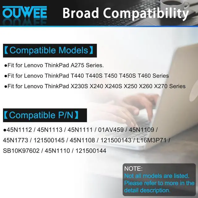 Replacement Battery Part Numbers45N1112 45N1113 45N1111 01AV459 45N1109 45N1773 121500145 45N1108 121500143 L16M3P71 SB10K97602 45N1110 121500144.