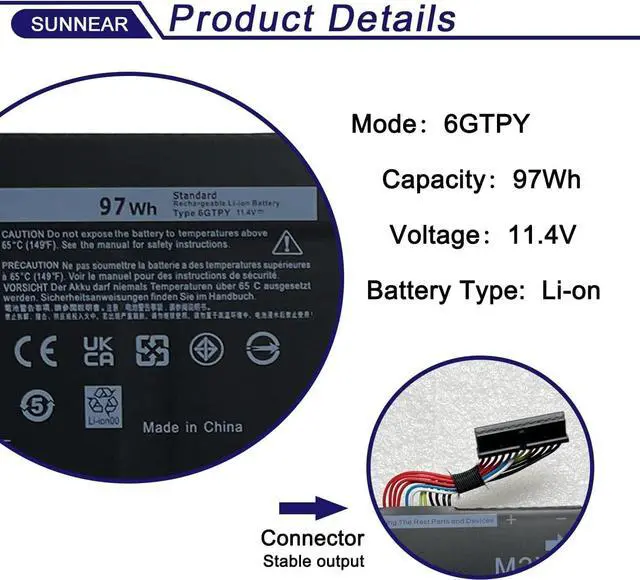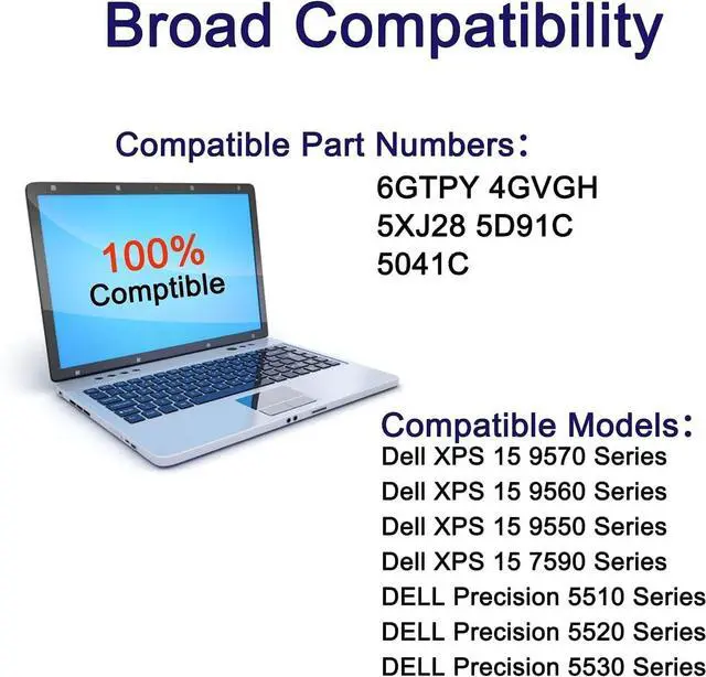 Compatible Part Number 6GTPY 5041C 4GVGH 05041C 5D91C 5XJ28 GPM03 P56F002 P56F001 P56F For Dell XPS 15 2017 9560, For Dell XPS 15 2018 9570 Series, For Dell XPS 15 7590 Series, For Dell Vostro 7500 Series, For Dell Precision 5520 M5520 Workstation Series, For Dell Precision 5530 M5530 Workstation Series, For Dell Precision 5540 M5540 Workstation Series, For Dell Precision 5510 M5510 Workstation Series