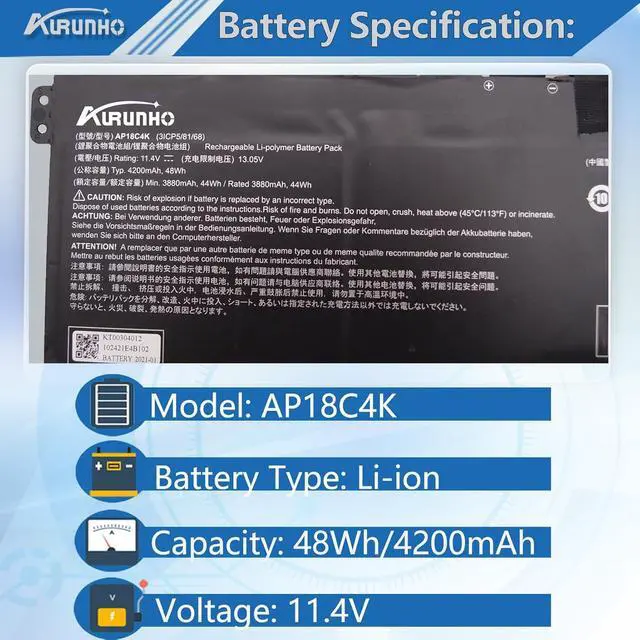 SecurityALl of our AP18C4K battery for Acer are CE, FCC, RoHS Certified. And have passed a series tests of short circuit, overheating, and overload protection before shipments for safety.