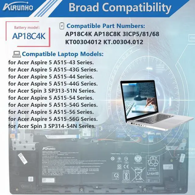 For ACER Aspire 5 A515 SeriesAP18C4K battery for Acer Aspire 5 A515-43 A515-43G A515-44 A515-44G, Acer Aspire 5 A515-54 A515-54G A515-56 A515-56G, Acer Spin 3 SP313-51N SP314-54N series.