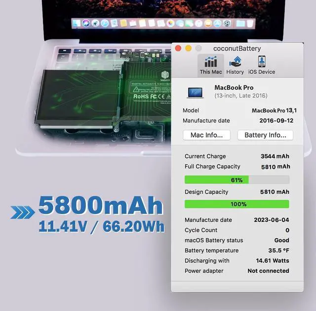 Macbook pro 13 Inch battery A1713 & A2171 Battery Specification-- Voltage: 11.41V.