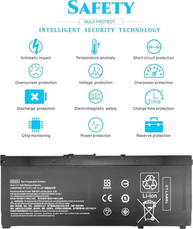 15-dc0006la Battery Replacement HP Omen 15 Laptop Battery Compatible with SR04XL SRO4XL SR03XL 917724-855 917678-171 917678-1B1 917678-2B1 L08934-2B1 L08934-1B1 L08855-856 L08855-855 HSTNN-DB7W HSTNN-IB7Z HSTNN-IB72 TPN-C133 TPN-C134 SR04070XL SR04070XL-PL TPN-Q193 TPN-Q211 TPN-C144 SR03052XL SR03052XL-PL HSTNN-DB8Q L08934-2C1 HSTNN-IB8L TPN-Q194 6GGE03TZ752E0 2EF91PA 2EF92PA 2EF93PA 2EF94PA 2EF95PA 2EF96PA 2EF97PA 2EF98PA 3KS69PA 3KS70PA 3KS71PA