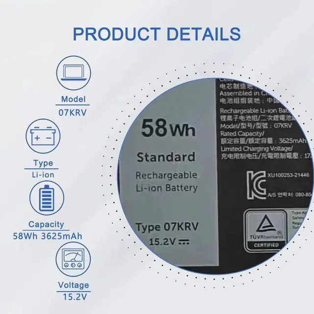 Compatible original Battery Codes 07KRV O7KRV 8H6WD PX0GF 8P81K 0Y86WG Y86WG 078FWY 4FVJG H4PVC 0H4PVC 8WRCR 08WRCR