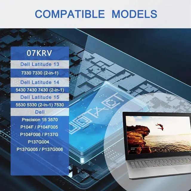 Compatible Laptop ModelsFit for Dell Precision 15 3570 series; for Dell Latitude 14 5430, 7430, 7430 (2-in-1) series; for Dell Latitude 13 7330, 7330 (2-in-1) series; for Latitude 15 5530, 5330 (2-in-1), 7530 series; for Dell P104F005 P104F006 P137G004 P137G005 P137G006 Series
