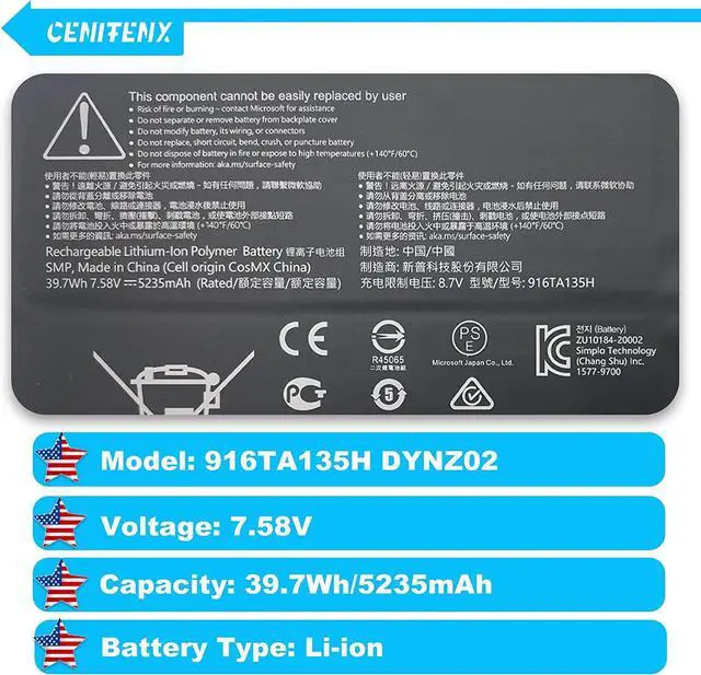 Battery SpecsBattery replacement model: 916TA135H DYNZ02.