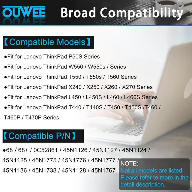Fully compatible and high stabilityLenovo ThinkPad X240 X250 X260 X270 T440 T450 T460 T470P L450 L460 T550 T560 W550 P50S Series.