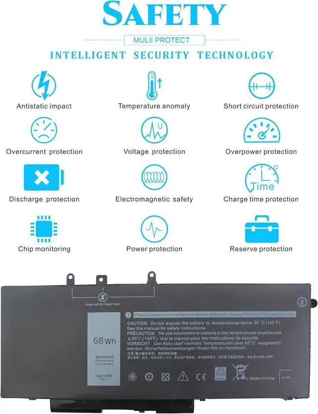 GJKNX 7.6V 68Wh Battery for Dell Latitude 5480; for Dell Latitude 5580; for Dell Latitude 5280 5288 5290 5488 5490 5590 5495 14-5491 15-5591 15-5590 E5480 E5580 E5490 E5590 Series P72G001 P60F001 (See Description Fit Laptop Models); for dell Precision 15-3520 3530 Series
