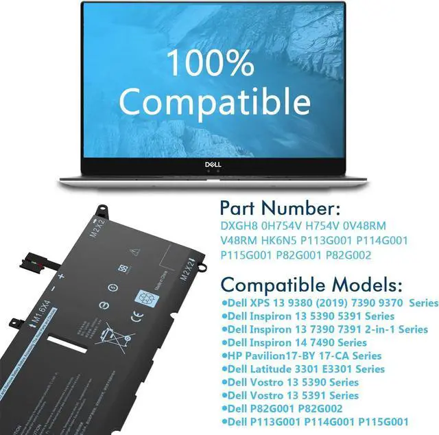 Compatible Part Number: for Dell XPS 13 9370, XPS 13 9380, Inspiron 5390 5391, Inspiron 14 7400 7490, Inspiron 7390 2-in-1, Inspiron 7391 2-in-1, Latitude 3301 E3301, Vostro 5390 5391, P113G001 P114G001 P115G001 P82G P82G001 P82G002