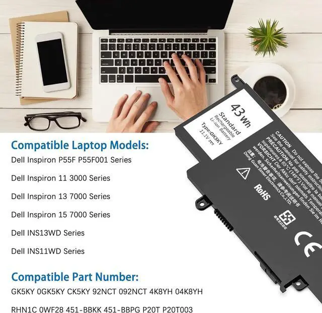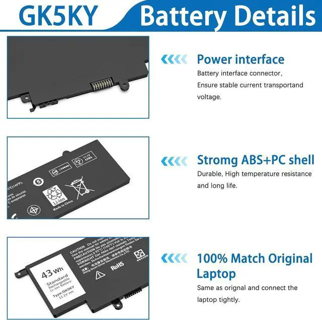 Packages includes: 1 x GK5KY Laptop Battery Replacement, 2 x Free Screwdrivers, 1 x Instruction for GK5KY Laptop Battery