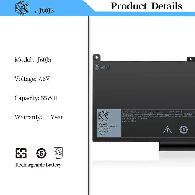 Compatible Laptop Model: Dell Latitude E7470 P61G001 Series Laptop, Dell Latitude E7270 P26S001 Series Laptop, Each of our E7470 E7270 J60J5 notebook battery for Dell is CE-/FCC-/RoHS-Certified, you can use it safely and buy it with confidence.