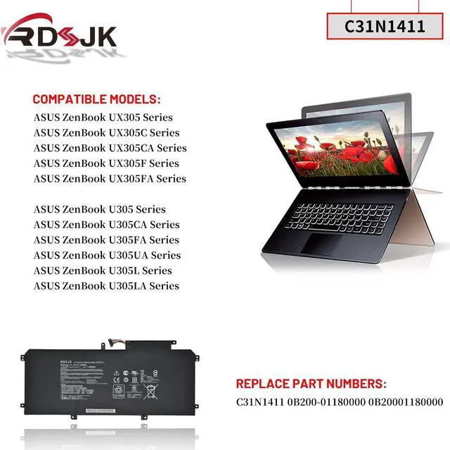 Compatible Models: Fit for Asus ZenBook U Series, U305 Series, UX305 Series, ZenBook UX305, UX305FA, UX305UA, UX305CA, UX305LA; ZenBook U305, U305FA, U305UA, U305CA, U305LA; ZenBook U305FA5Y71, U305FA5Y10, U305FA6Y30, U305UA6200, U305CA6Y30, UX305LA5200, UX305FA-USM1 Series