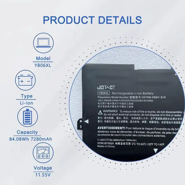 Replacement for Part Number YB06XL YB06084XL 928427-271 928372-855 928372-856 926372-855 926427-271 928427-272 HSTNN-DB8H HSTNN-DB8V TPN-Q200 3ICP5/50/83-2 YBO6XL