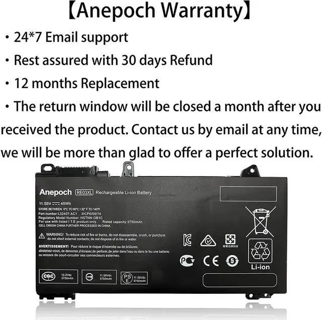 Replacement for Part Number: RE03XL HSTNN-0B1C HSTNN-DB9A HSTNN-OB1C HSTNN-UB7R L32407-2B1 L32407-2C1 L32407-541 L32407-AC1 L32656-002 L32656-005