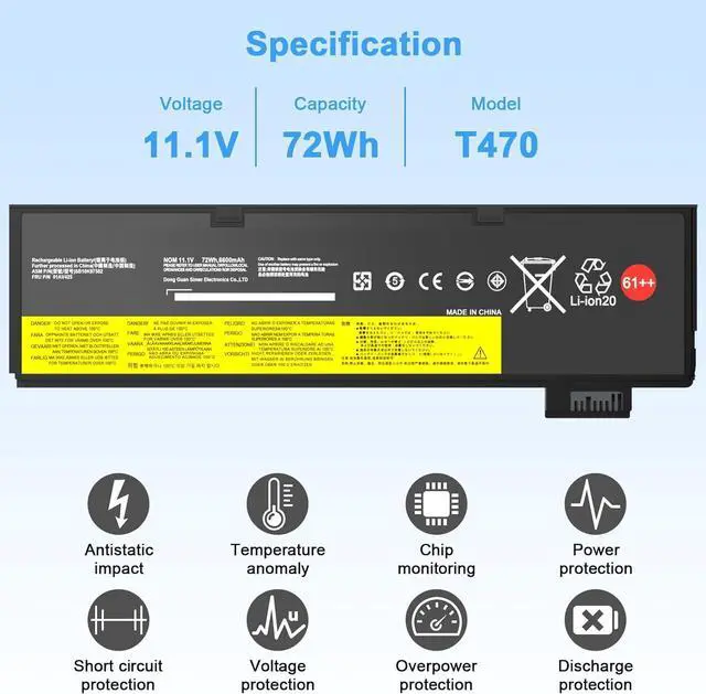 Stability: 01AV427 T470 Laptop Battery Replacement battery for Dell offers 1000+ recharge cycles over life of battery.