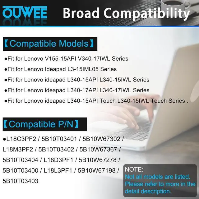 Replacement For LaptopLenovo V155-15API V340-17IWL, IdeaPad L3-15IML05, Ideapad L340-15API L340-15IWL L340-17API L340-17IWL L340-15IWL Touch L340-15API Touch Series Notebook.