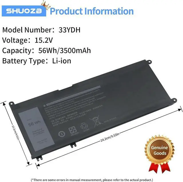 Compatible P/N: Applicable to Dell 56 amp-hour battery 33YDH.