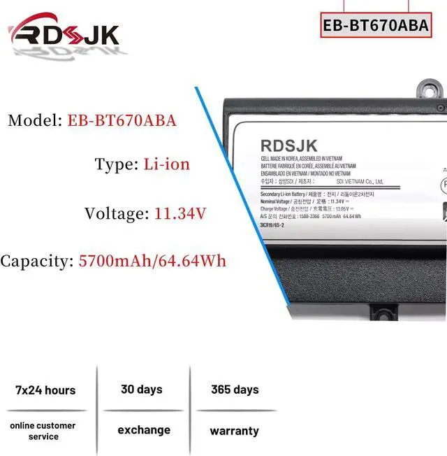 Replace Part Numbers: EB-BT670ABA EB-BT670ABE AA2GA26BS AA2GC05BS AA2GB07BS AA2GB07B AA1G907KS AA1GA02BS AA2GC16BS AA2GB23BS AA2H305BS AA2J929BS GH43-04548A GH43-04548B 3ICR19/65-2