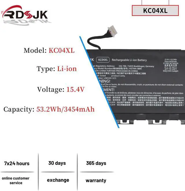 Replace Part Numbers: KC04XL HSTNN-DB8P L08544-2B1 L08496-855 TPN-W133 TPN-W136 L08544-1C1 HSTNN-IB8K KC04053XL KCO4XL LO8496-855 KC04 KCO4