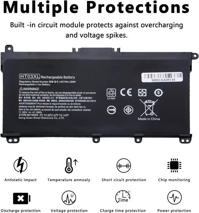 Security & ReliabilityOur products are equipped with advanced security features to protect against short circuiting, over voltage, and overheating, which is a reliable choice for your HP Laptop. With built-in overcharge and overdischarge circuit protection, over-temperature and short-circuit protection, you can feel rest assured that our products are brand new from the manufacturer, guaranteeing reliability and top performance.