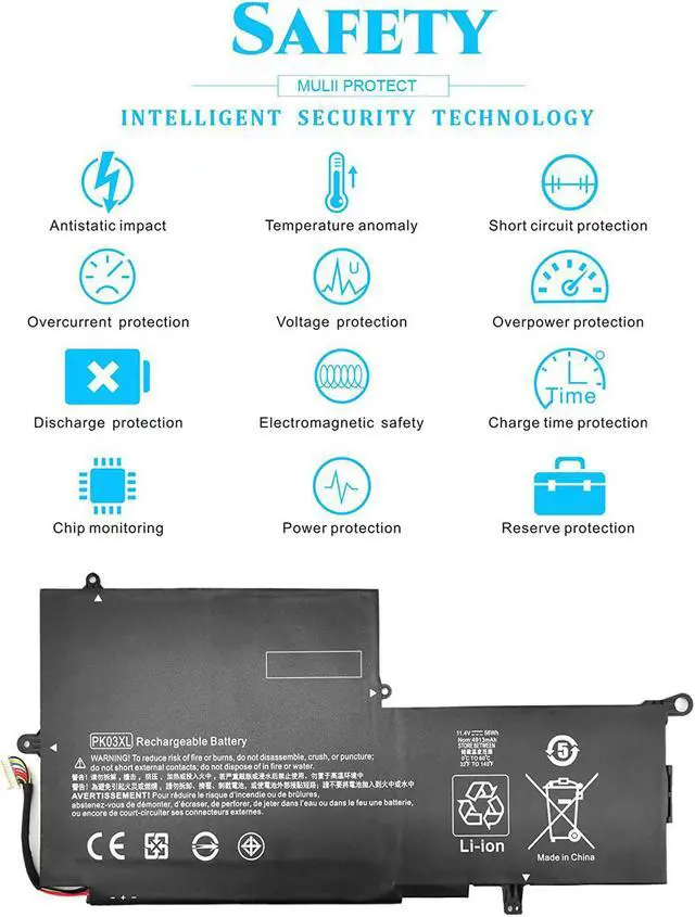SECURITY & RELIABILITY Our PK03XL batteries for HP Spectre Pro X360 are assembled from top quality material and circuit boards to ensure fast charges and low power consumption, 100% New from Manufacturer, Overcharge and Overdischarge Circuit Protection, Over-temperature and Short-circuit Protection, up to 500 recharge cycles over the life of the battery, meet OEM standard. You can buy it with confidence and use it safety.