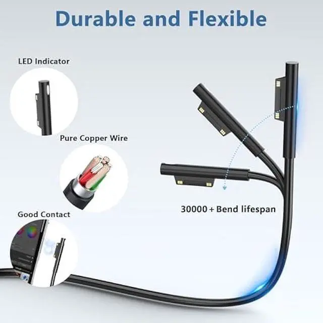 Compatible with Microsoft Surface Model: Compatible with Microsoft Surface Pro 10, 9, 8, 7+, 7, 6, 5, 4, 3, X, Laptop 7, 6, 5, 4, 3, 2, 1, Studio, Book 3, 2, 1, Go Laptop, Tablet 3, 2, 1. perfect match model 1706, 1866, 1796, 1724, 1625, 1867, 1735, 1800 and so on, higher charging performance than 44W, 39W, 36W, 24W laptop / tablet charger