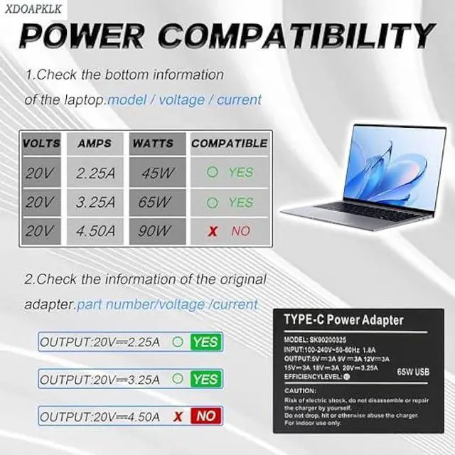 Watts: 65W TYPE-C /Compatible with 45W/This Charger also Compatible with Dell Type C, Lenovo chromebook charger type cAcer USB CSamsung Type CAsus USB C
