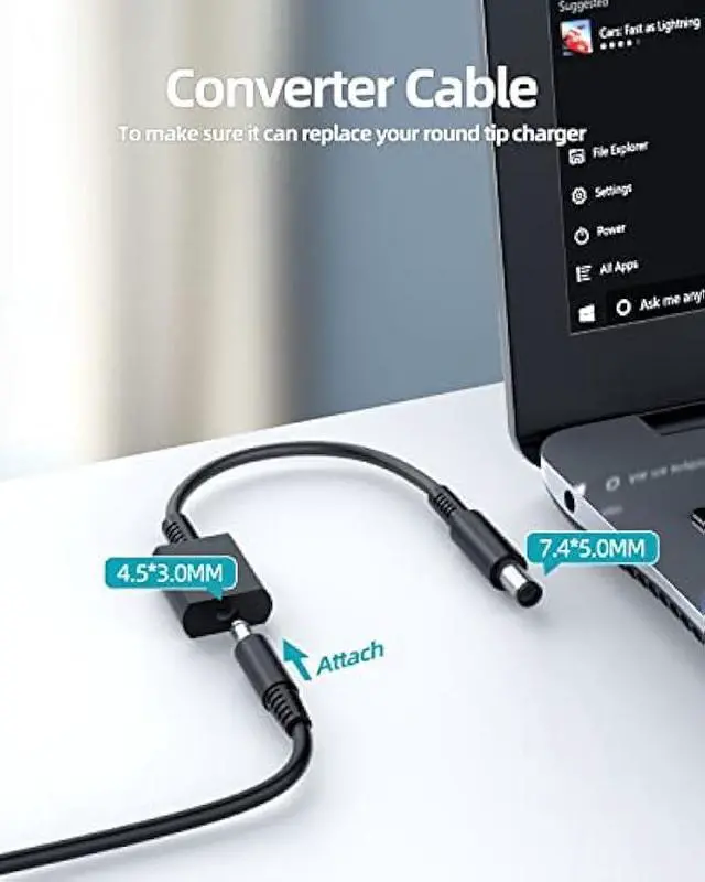 Package Includes: 1 X power cord, 1- 4.5 X 3.0 mm to 7.4 X 5.0 mm Converter Cable, which can be used for 7.4 X 5.0 mm connector laptops.