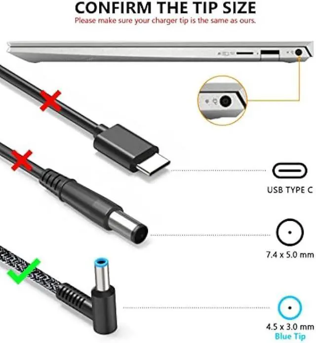 Compatible With HP Smart Blue Tip Models 65W/45W: Pavilion x360 11 13 15 m3, Compatible With HP Stream 11, 13, 14, Chromebook 11 EE G2 G3 G4, Notebook 15, Zbook and more laptop. Compatible With HP ProBook x360 435 G7 G8 G9, Compatible With HP ProBook x360 11 G1 G2 G3 G4 G5 G6 EE, 450-G3 450-G4 450-G5 650-G2 650-G3 650-G4 455-G3 455-G4 455-G5 455-G6 470-G3 470-G4 470-G5 640-G2 640-G3 640-G4 645-G2 645-G3 645-G4; Compatible With HP EliteBook 820 840 850 G3 G4 G5, 725-G3 725-G4, 745 G3 G4, 755 G3 G4 Folio 1020 G1 G2, 1030 G1 G2 G3, 1040 G1 G2 G3 G4 G5