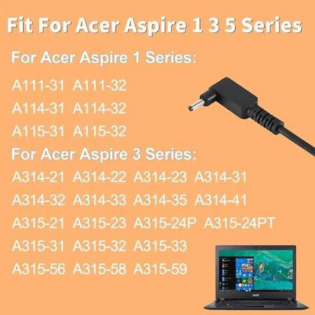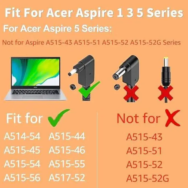 Replacement For Acer Aspire 5 Laptop ChargerFit for Acer Aspire 5 laptop A514-54 A515-44 A515-45 A515-46 A515-54 A515-55 A515-56 A515-57 A517-52 Series A515-56-32DK A515-54G-54QQ A515-55-56VK A515-57-53T2 Not fit for acer aspire A515-43 A515-51 A515-52 A515-52G Series!!!