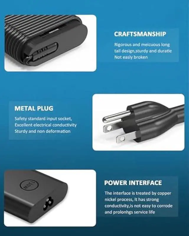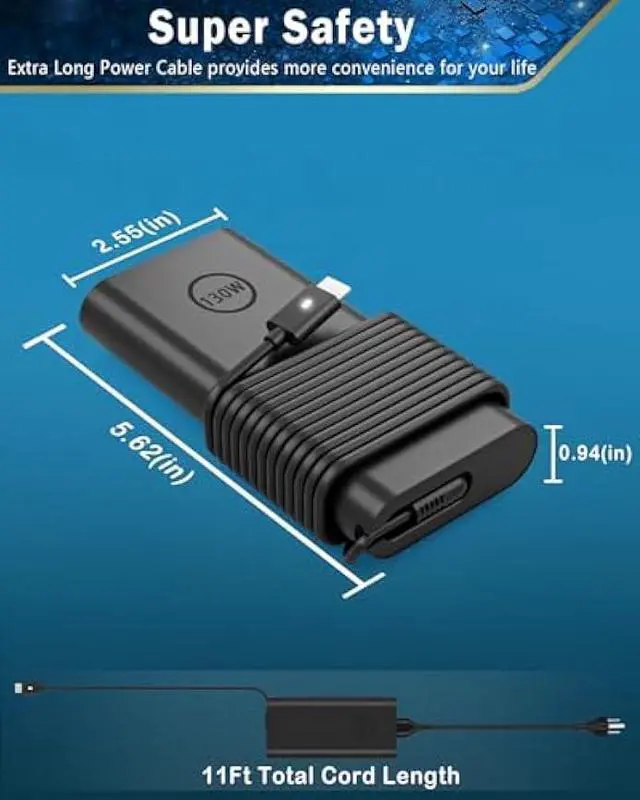 Compatible Dell Computer ModelCompatible with DELL 130W charger designed for Dell XPS 15 9575 2-in-1 XPS 15 9500 17 9700 Latitude 7410 7310 7210 9410 5420 5520 5320 5411 5510 5511 5310 5410 Precision 5550 5750 3560 3550 3551 Precision 5530 2 in 1