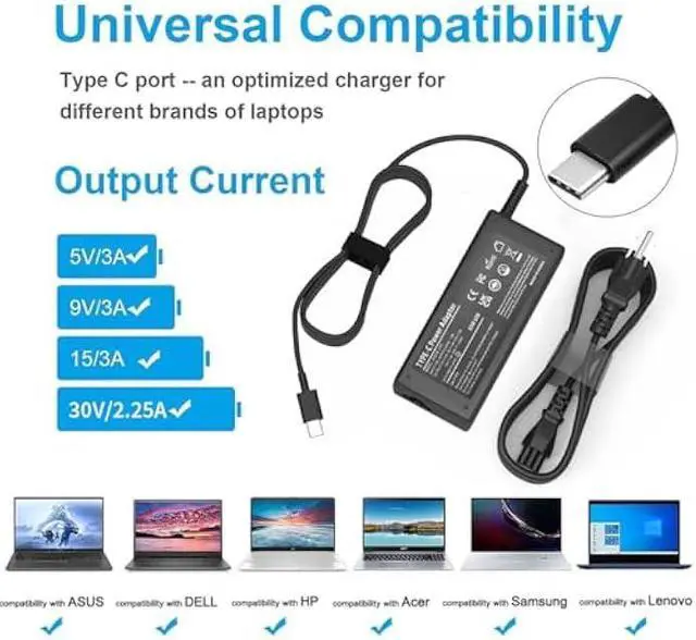 Watts: 65W Compatible with 45W Type-c USB C Charger