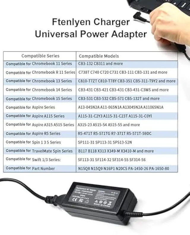 Compatible with Acer chicony a18-045n2a a13-045n2a delta adp-45fe f adp-45he b liteon pa-1450-26 A11-065N1A, Compatible with Chromebook 15 CB3-532 Model N15Q8 N15Q9 N16P1 C738T C740, Compatible with acer spin 3 n19w2, Compatible with Aspire Go 15 AG15-31P AG15-31P-3947