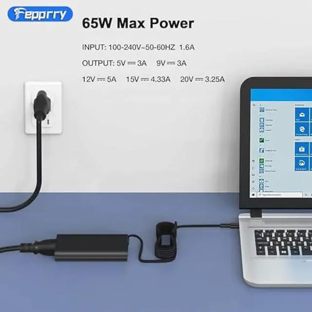 Compatible with 65W USB C Laptop ChargerCompatible with XPS 13 9300 9305 9310 9360 9365 2-in-1 9370 9380 9350 7390 9250 7390 2-in-1 9365 2-in-1, XPS 12 9250 9Q23 9Q33 L221X, XPS 15 9550 9560, Chromebook 3100 5300 5190 2-in-1 7486 3100 3400 3380