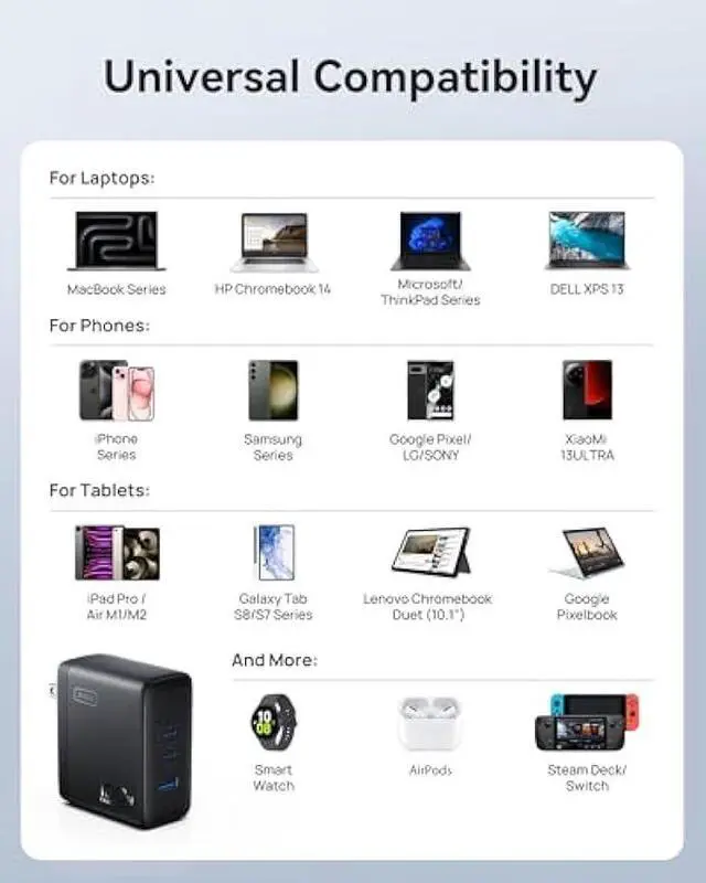 Power Trio: Charge Fast, Charge Three! 100W for laptops and fast-charging devices simultaneously. Unmatched speed and efficiency.