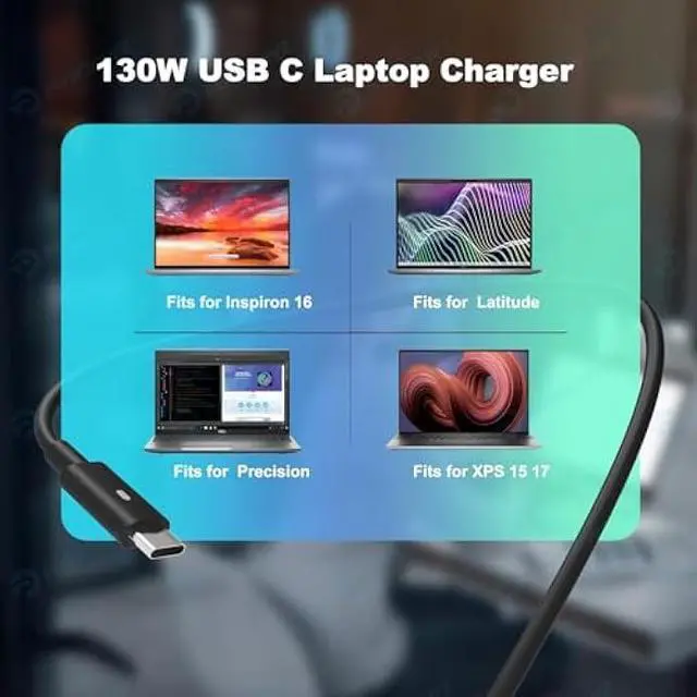 Compatible with Laptop Charger USB C Compatible with Latitude 9510 9410 7410 7430 7310 7210 5520 5521 5531 5530 5501 5511 5510 5430 5420 5401 5411 5421 5431 5410 5400 5320 5310 3500 3400, Precision 5530 2in1, Precision 3470 3480 3541 3551 3560 3561 3570 3571 3580 3581 3550 3540 5470 5480 5760 5550 5560 5570 5750 5760 5770, XPS 15 9500 9510 9520 9530 9575 2in1, XPS 16 9640, XPS 17 9700 9710 9720 and Compatible with Inspiron 16 7620 7630 7640, Alienware M17 R3/Alienware X14 R1/Alienware x14 R2