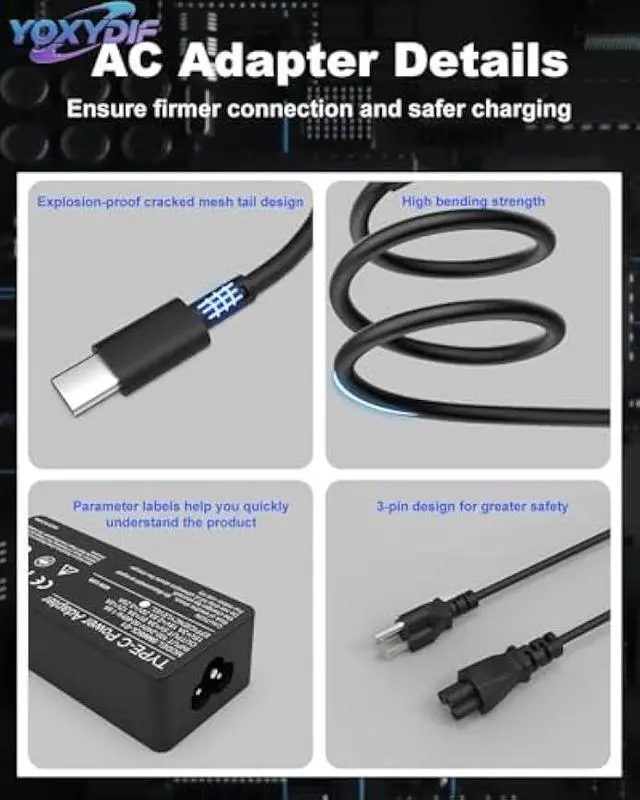 What You'll Get: 1 x Replacement for Laptop Charger USB C & 1 x Power Cord