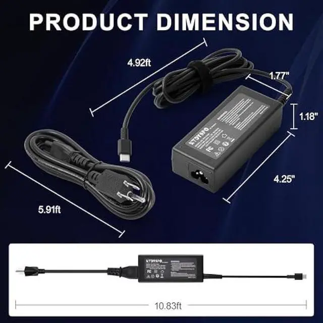 INTELLIGENT SAFETY PROTECTION Built-in smart chip protects against overcurrent, overvoltage, overheating, and short circuits, keeping your device safe whether using it as HP laptop charger USB-C or standard adapter