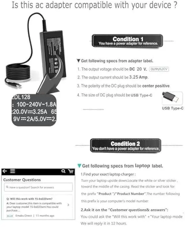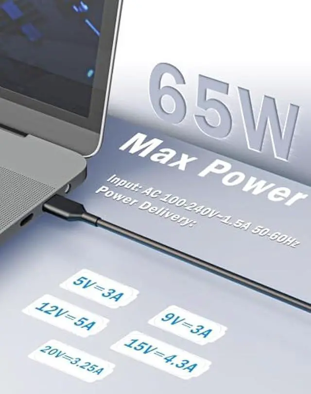 • SZGUDULO Charger Compatible with All Laptop Chromebook series 65W USB C Laptop Charger replacement for Acer HP Lenovo Dell Samsung Asus Macbook Pro Google SeriesInput:100-240v 1.3A 50-60Hz ,Output:5V--3A 9V--3A 12V--3A 15V--3A 18V--2.5A 20V3.25A Compatible with 45W USB-C Laptop Charger