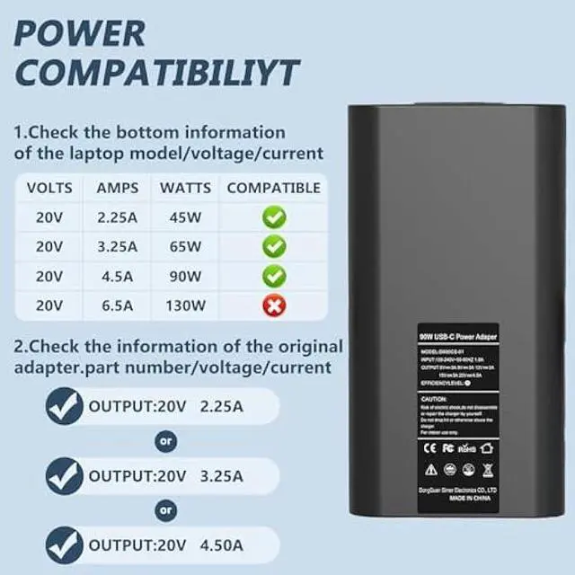WHAT YOU GET: 1x 90W USB Type-C Power Adapter Compatible with Dell, 1x AC power cord