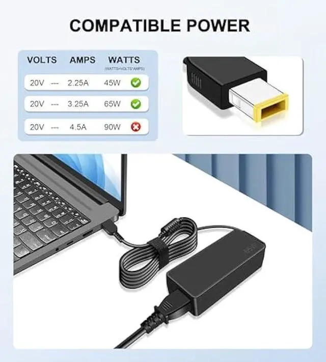 Intended for Models: This adapter compatible with Lenovo laptops requiring ADLX65NDT3A 0A36258 ADLX65NLC3A ADLX65NDC3A ADLX65SLC2A 45N0251 ADLX65NCC3A SA10J20098 ADLX65NCC2A ADLX65NDC2A ADLX65NLC2A ADLX65SDC2A ADLX65NDC3 0C19868 PA-1650-72 ADP-65FD B